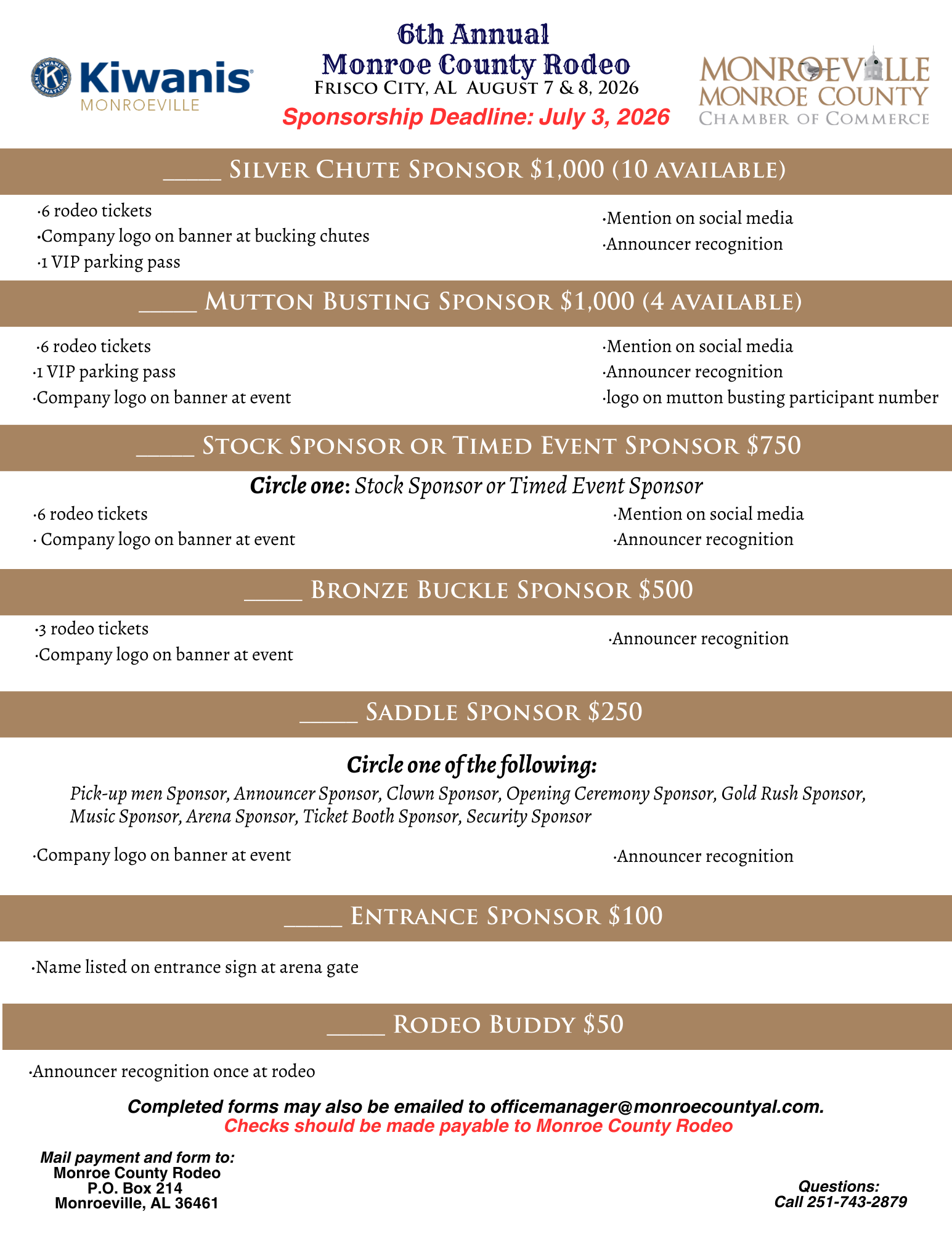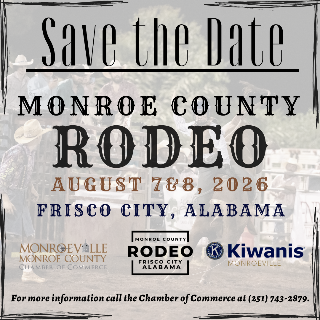 The Monroeville/Monroe County Chamber of Commerce and the Kiwanis Club of Monroeville are pleased to announce the 6th annual Monroe County Rodeo in August in Frisco City, AL!